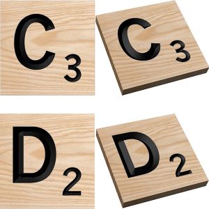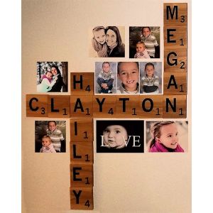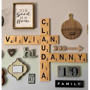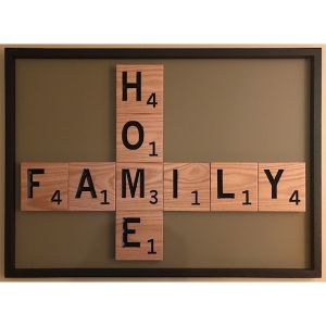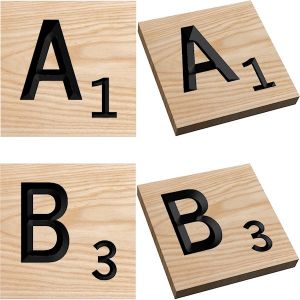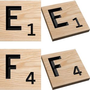 These Scrabble tile are v-carved These Scrabble tile are v-carved out of a 6" X 6" piece of solid hardwood that is 3/4" thick. The cuts are nearly 1/2" deep giving these giant tile a nice 3D look. The cuts are painted black and then a satin clear coat is applied to protect the tile. These tile have a keyhole cut in the back so they are ready to hang as soon as you receive them. Scrabble letters can be used for fun wall art in any room of your home, as well as dorm rooms, offices and more. Take advantage of our quantity discounts, you get 10% off 7-13 tile making each letter $8.06 each, and a 20% discount is applied to orders of 14 or more tile making the price only $7.16 each.